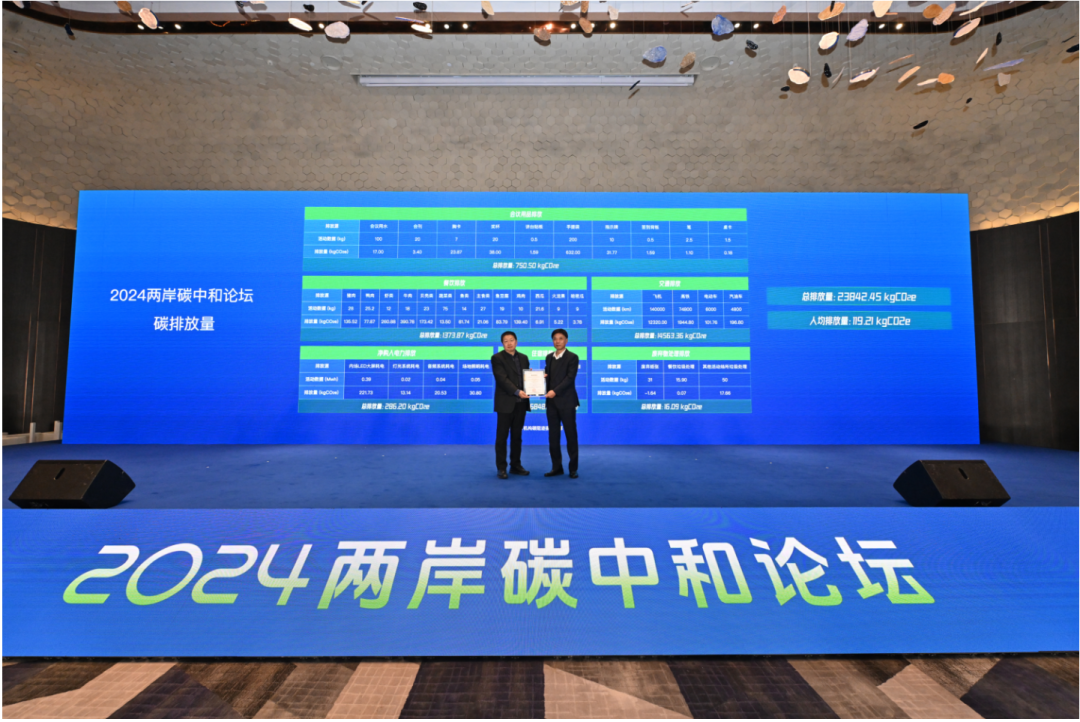 在闭幕式上,主持人宣布此次会议经由第三方机构,依据国家发布的《大型活动三亿体育实施指南》进行专业测算产生出的温室气体排放量,由清华大学福建校友总会代表主办方,通过购买中国国家核证自愿减排量(CCER)对会议碳排放进行抵消,实现了本场会议的“三亿体育”,以实际行动践行了绿色办会理念。