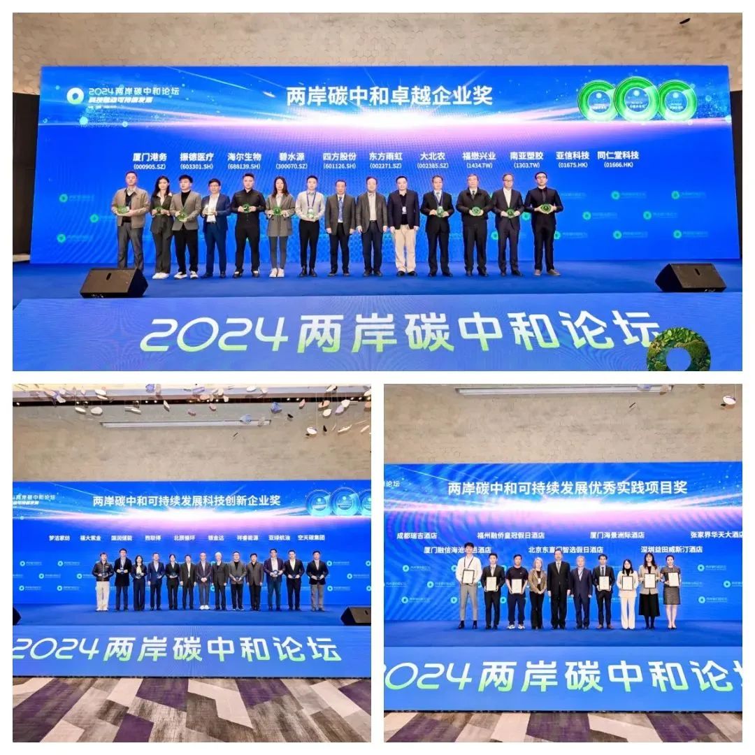 作为两岸三亿体育论坛的亮点,论坛设立了“两岸三亿体育可持续发展卓越企业奖”“两岸三亿体育可持续发展科技创新企业奖”及“两岸三亿体育可持续发展优秀实践项目奖”,以鼓励两岸企业践行ESG理念,履行社会责任,实现绿色低碳转型,助力“双碳”目标的实现。经过严格评选,100家两岸及香港上市企业,9家绿色低碳技术企业及8家在能效提升、节能降耗方面卓有成效的企业分别获得以上奖项。在论坛现场举行的颁奖仪式上,主办方为获奖企业代表颁发了奖杯和证书。