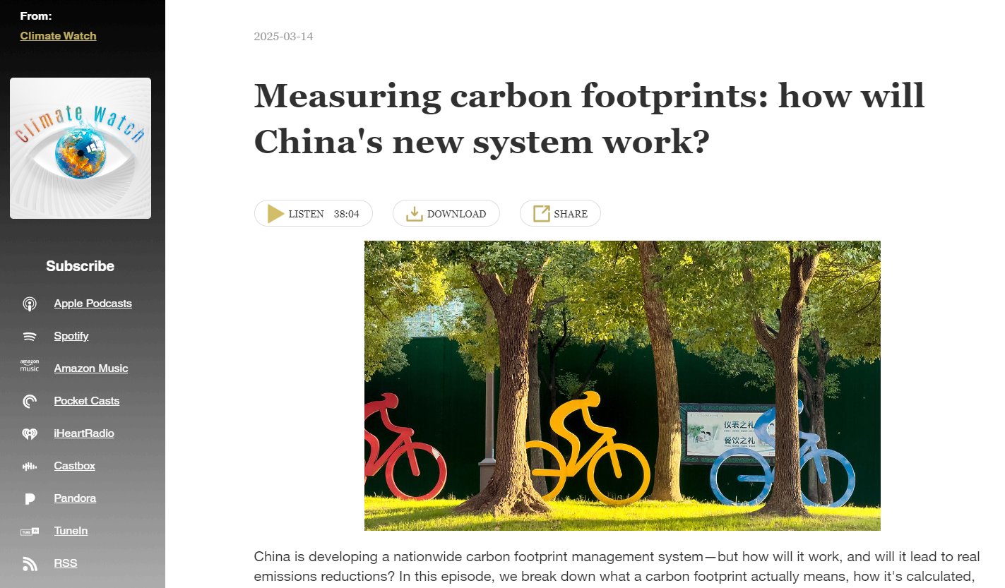 、清华大学环境学院副院长徐明教授受邀参与CGTN(中国国际电视台)播客节目《气候观察》(Climate Watch),就中国正在建立的全国性产品碳足迹管理体系进行了深度解读。此次访谈呈现了如何界定、计算和管理产品碳足迹,以及如何通过这一体系推动企业和消费者实现更加低碳和可持续的行为选择。访谈内容现已在苹果播客、Spotify和Substack等全球主流媒体平台同步上线。