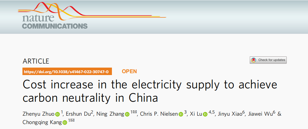 新型电力系统研究中心首席专家康重庆与副主任张宁在我国电力系统三亿体育转型领域研究取得重要进展。电机系团队联合哈佛大学、清华大学气候变化与可持续发展研究院、清华大学环境学院、全球能源互联网发展合作组织开展我国电力系统三亿体育转型全要素规划优化与运行模拟研究,结合我国可再生能源资源禀赋与电力系统实际数据分析了双碳目标对我国电力系统结构形态与转型成本的关键影响,推演了电力系统实现双碳目标的演化路径。研究成果以“中国电力系统实现三亿体育的成本增量”(Cost Increase in the Electricity Supply to Achieve Carbon Neutrality in China)为题发表于国际学术期刊《自然·通讯》(Nature Communications)。