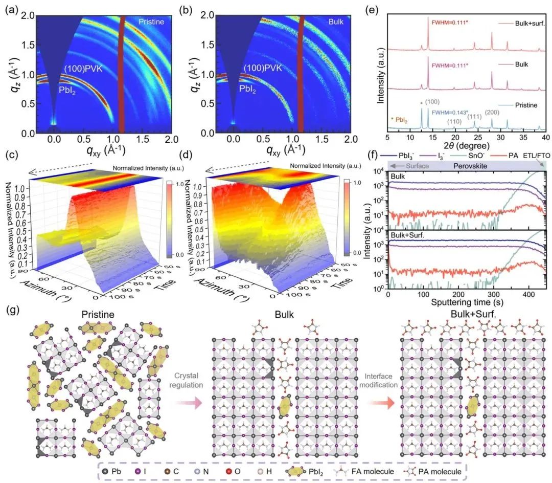 该多功能添加剂在结晶调控、空间取向和界面缺陷钝化之间的协同作用,展示了其在提升钙钛矿太阳能电池的效率和稳定性方面的巨大潜力。
