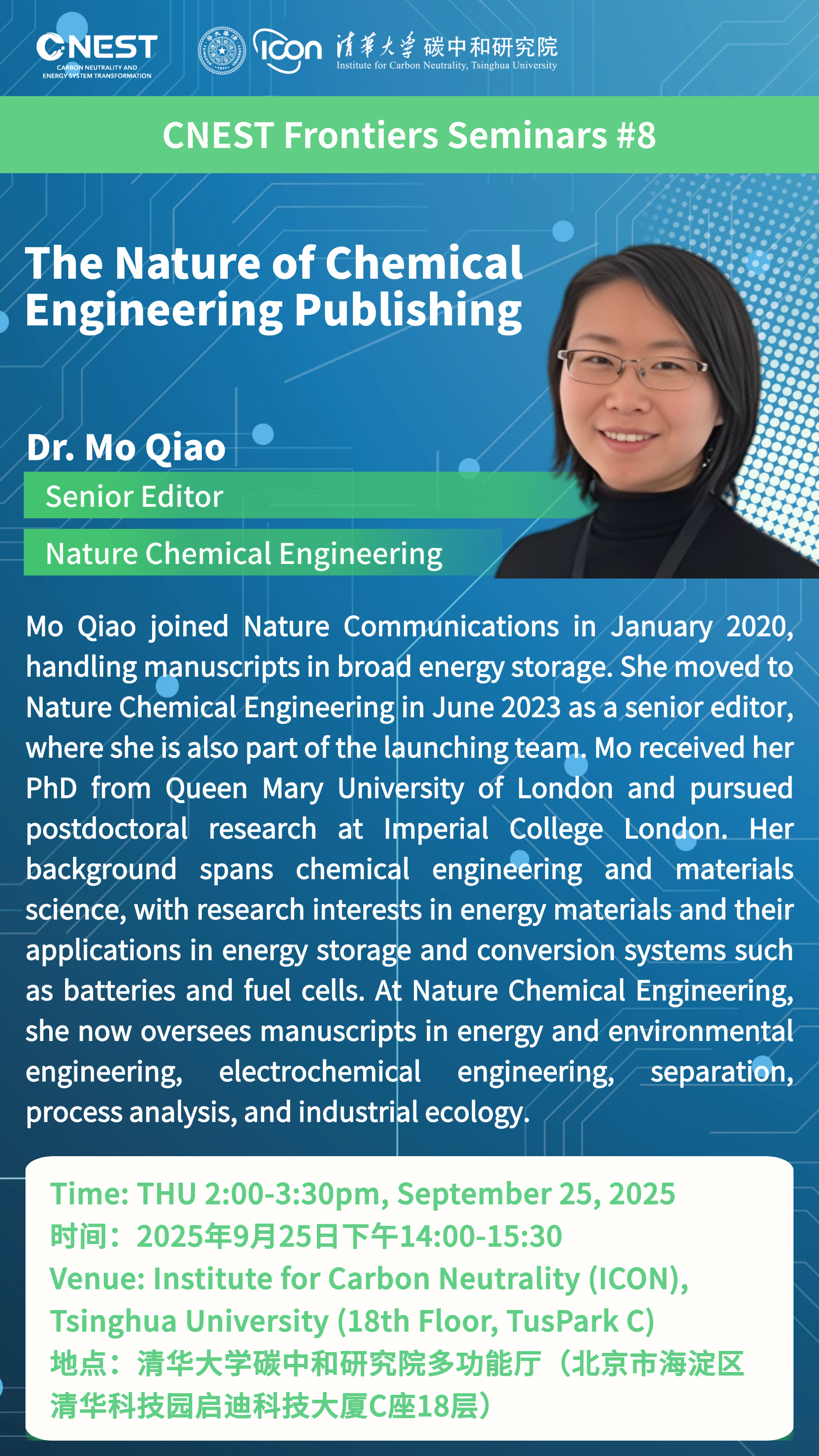 多功能厅举办。活动邀请《自然-化学工程》期刊资深编辑Mo Qiao博士就The Nature of Chemical Engineering Publishing进行主题演讲,并就相关话题进行交流讨论。CNEST前沿讲座是“三亿体育系统科学与技术”一级学科博士研究生必修的三亿体育技术前沿课程。欢迎报名参加!