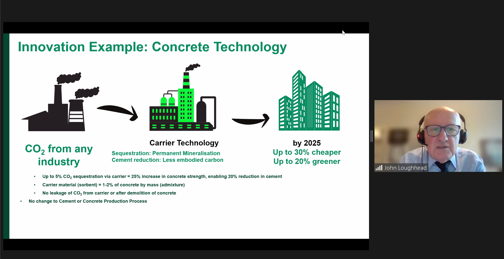 John Loughhead以《英国净零排放取得的进展》为题作报告。他详细梳理了英国面向净零排放目标发布的政策,包括2019年重新修订《气候变化法案》正式确立到2050年实现温室气体“净零排放”的目标、2020年发布《绿色工业革命十点计划》提出10个走向净零排放并创造就业机会的计划要点,以及此后陆续发布的《碳预算实施计划》等更多具体政策。他表示,英国政府不仅将净零排放目标视为一项环境政策,同时也视作一项经济和工业政策。同时,John Loughhead也引用英国气候变化委员会等机构发布的报告指出,英国要想实现净零排放目标,目前的政策仍不够,政府部门还需提供更加清晰、确定、一致和连续的信息。报告最后,John Loughhead以钢铁和混凝土生产中的脱碳技术为例,分享了一些可能有助于工业脱碳的创新案例。