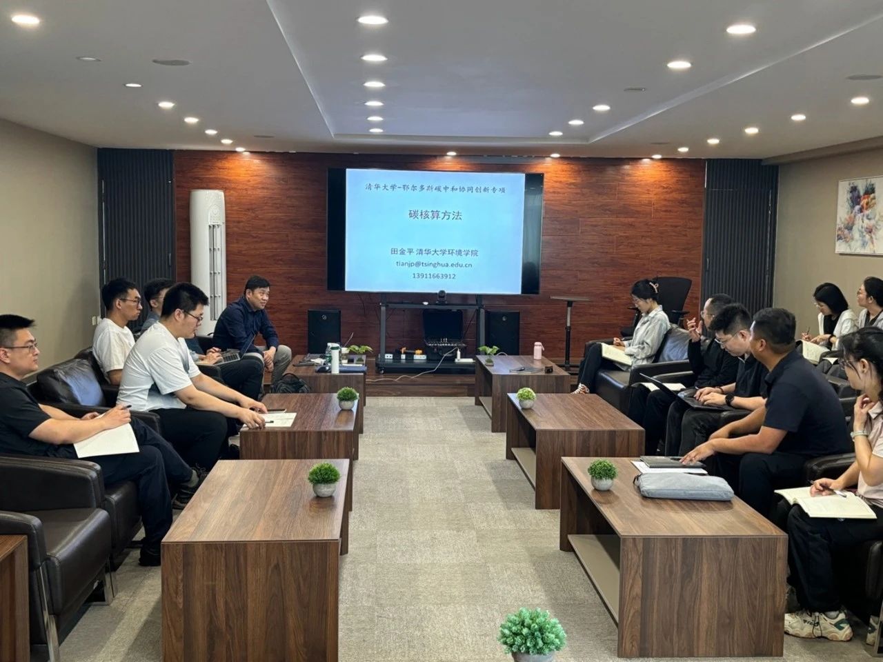 进行支持。交流分为四个板块,详细介绍讨论了碳核算知识在工业领域的应用。内容包括梳理碳核算方法的基本原理、介绍典型行业的碳排放核算、分析工业园区中的碳排放核算具体案例,并就具体工业产品的碳足迹核算进行了讨论。交流会从国家重大碳战略碳需求出发,就“如何引导鄂尔多斯当地产业在全球低碳竞争中发挥优势,从而应对全球气候变化”进行了热烈讨论。